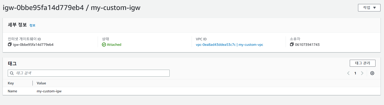 VPC에 잘 연결된 것을 알 수 있고, 이로서 이제 VPC에서 패킷이 나갈 수 있음을 확인할 수 있습니다.