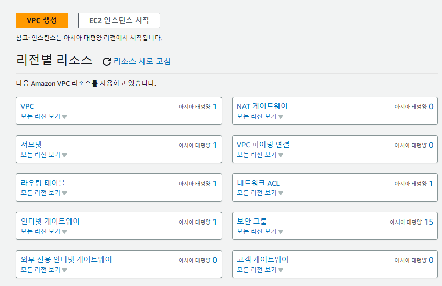 기본 VPC를 제외한 Custom VPC를 한번 생성해보록 하겠습니다.