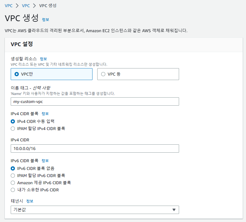 1. Custom VPC 만들기