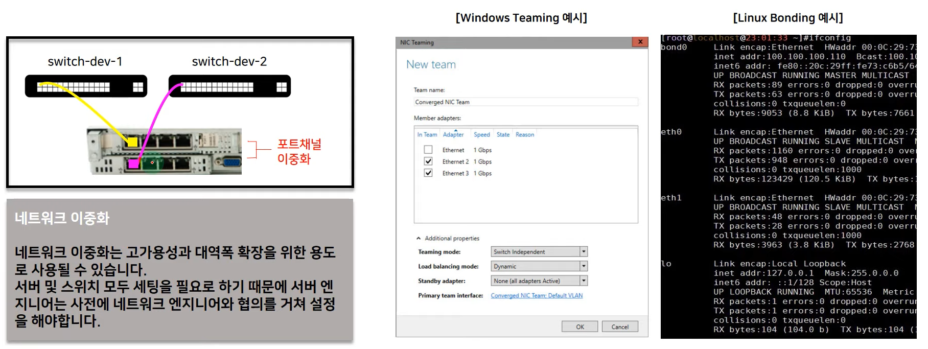 이러한 이중화 작업을 티밍 혹은 본딩이라고 부릅니다.