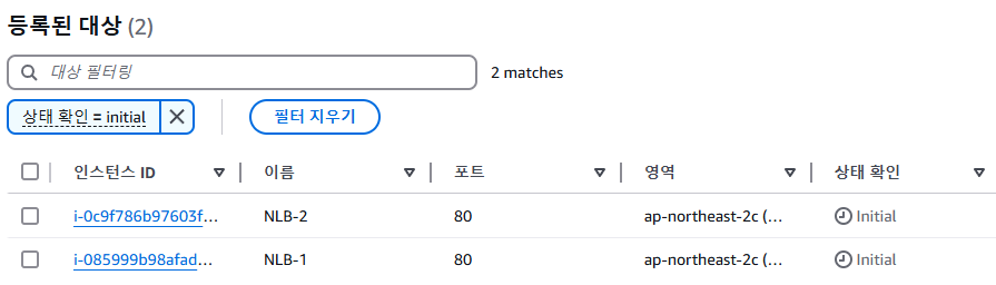 로드밸런서를 만든 뒤, 대상 그룹으로 들어가 세부정보를 보게 되면 상태 확인으로 Intial 이 뜨게 되는데, 이는 초기 생성 중이라 발생하는 현상이며 기다리면 Healthy 상태로 변경 됩니다.